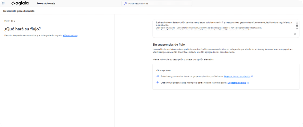 - Se abre el diseñador de flujo con IA